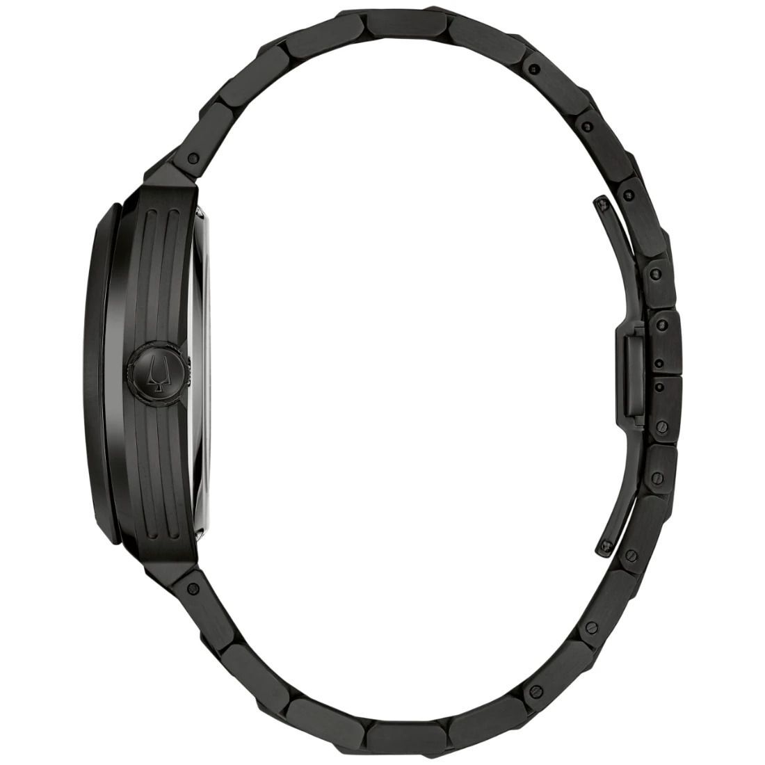 Este reloj Bulova para hombre de la colección Maquina ofrece un diseño atrevido y vanguardista. El reloj cuenta con una caja de acero inoxidable en tono negro de 40 mm con un cristal de zafiro curvado, un bisel negro y un brazalete de acero inoxidable en tono negro con cierre desplegable y botón pulsador. La esfera con patrón de colores del arcoíris tiene agujas negras y marcadores de tono plateado con relleno luminiscente y una apertura central que revela el funcionamiento interno del movimiento esqueletizado automático de 21 joyas, también visible a través de un fondo de caja transparente, que tiene una reserva de marcha de 42 horas. Con su corazón mecánico y su forma moderna sin igual, este reloj Bulova para hombre ofrece una expresión de estilo única e individual.