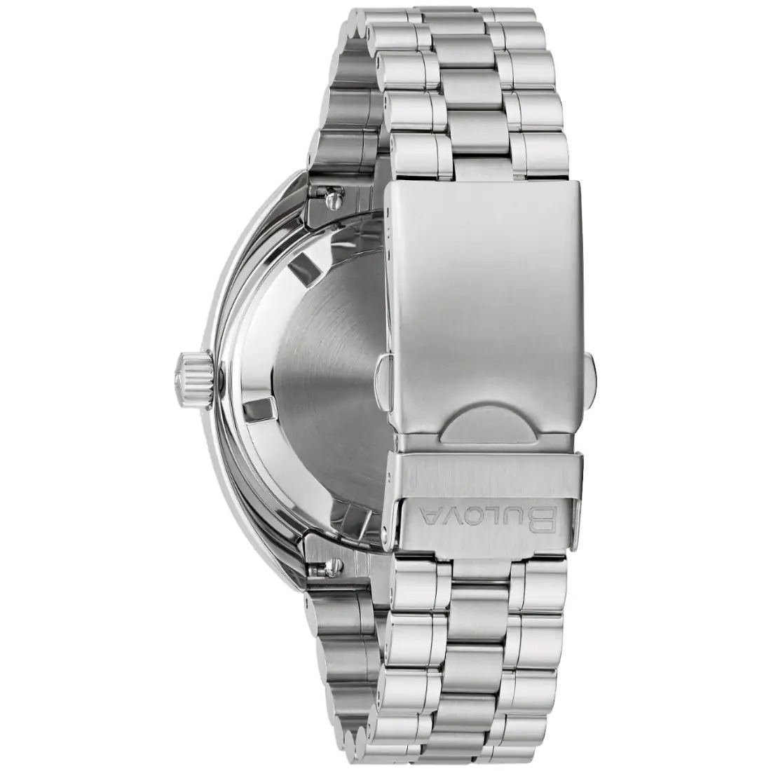 Reloj Bulova colección Archivo Histórico Oceanographer GMT 96B405 para Caballero. Movimiento mecánico de cuerda automática de 4 manecillas y fechador. Reserva de marcha de 42 horas. Caja y brazalete realizados en acero inoxidable, broche desplegable de doble pulsador. Carátula azul, indicadores y manecillas luminiscentes en plateado, detalle rojo en segundero. Cuenta con una cuarta manecilla como indicador de segunda zona horaria de 24 horas.(GMT office) Bisel superior giratorio de 24 horas, dos tonos azul/rojo. Cristal de zafiro abombado con tratamiento antirreflejante. Resistencia al agua de hasta 200 metros.