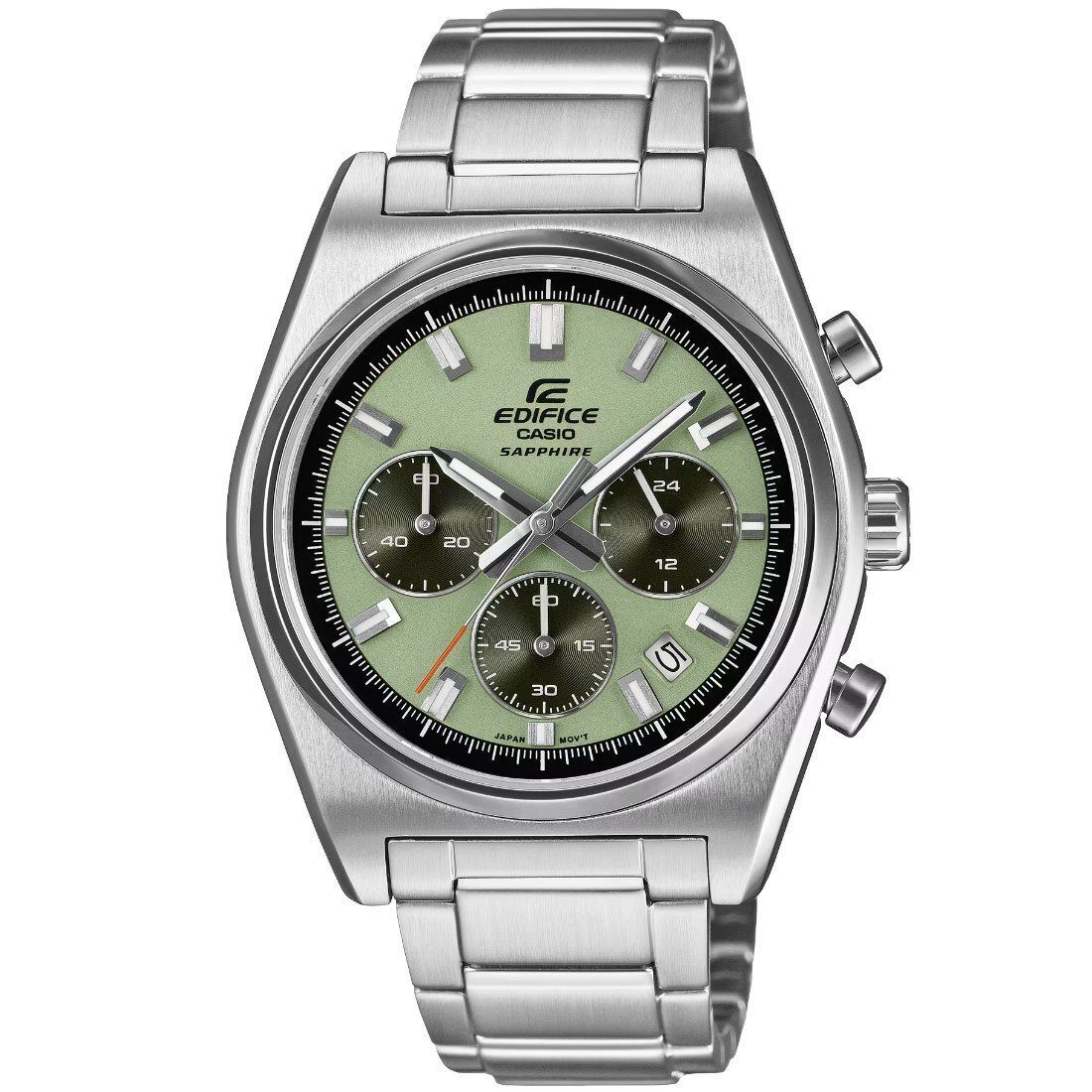 Construido con cristal de zafiro, acero inoxidable en caja y brazalete, este cronógrafo EDIFICE garantiza resistencia, durabilidad y un acabado premium, además de resistencia al agua de 10 bares para un desempeño confiable en el día a día.