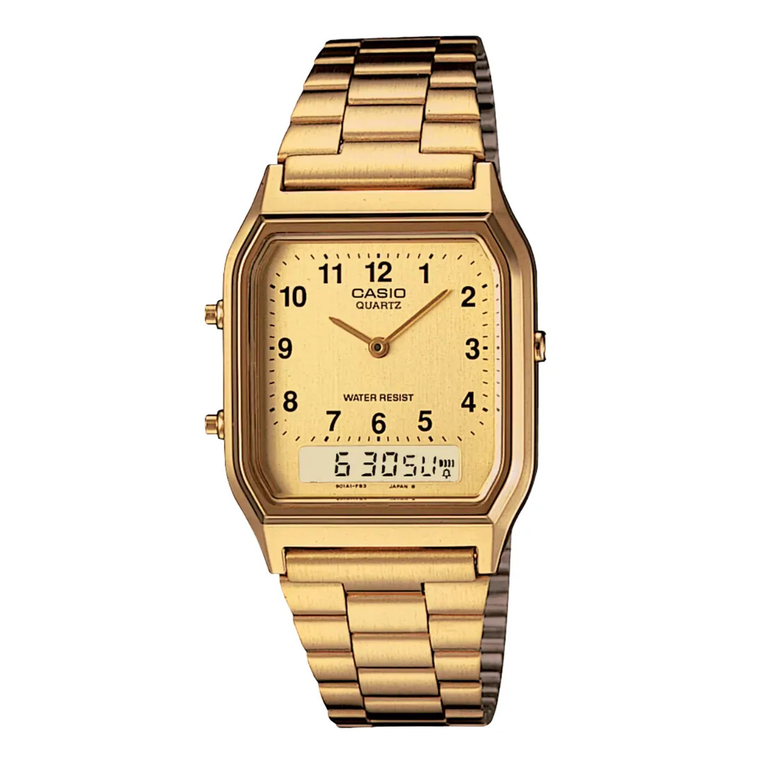 Analógica: hora y minuto; Digital: hora, minuto, segundo, p. m., mes, fecha, día