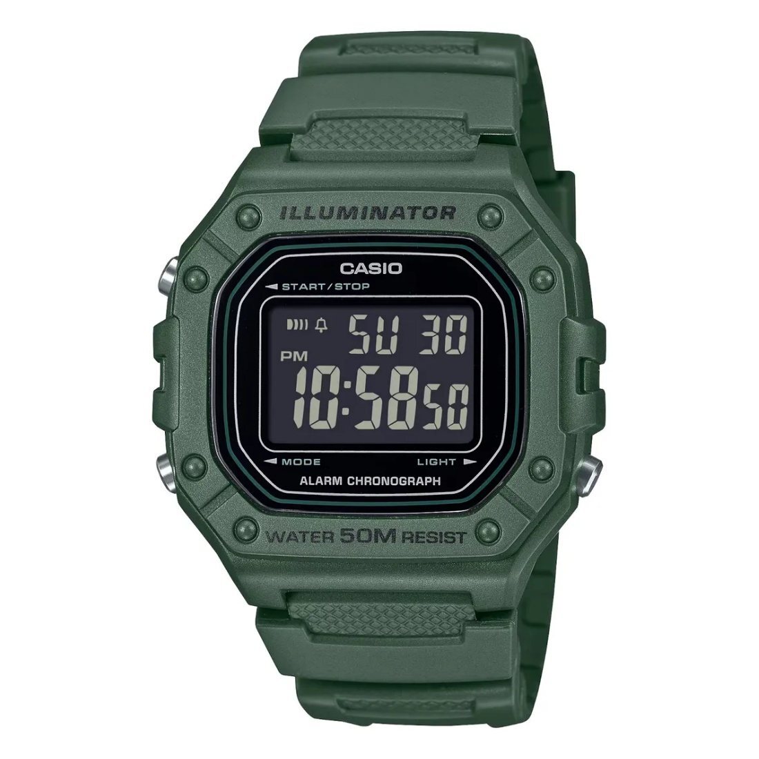 Reloj Casio W-218h-3bvcf Illuminator-verde Negro