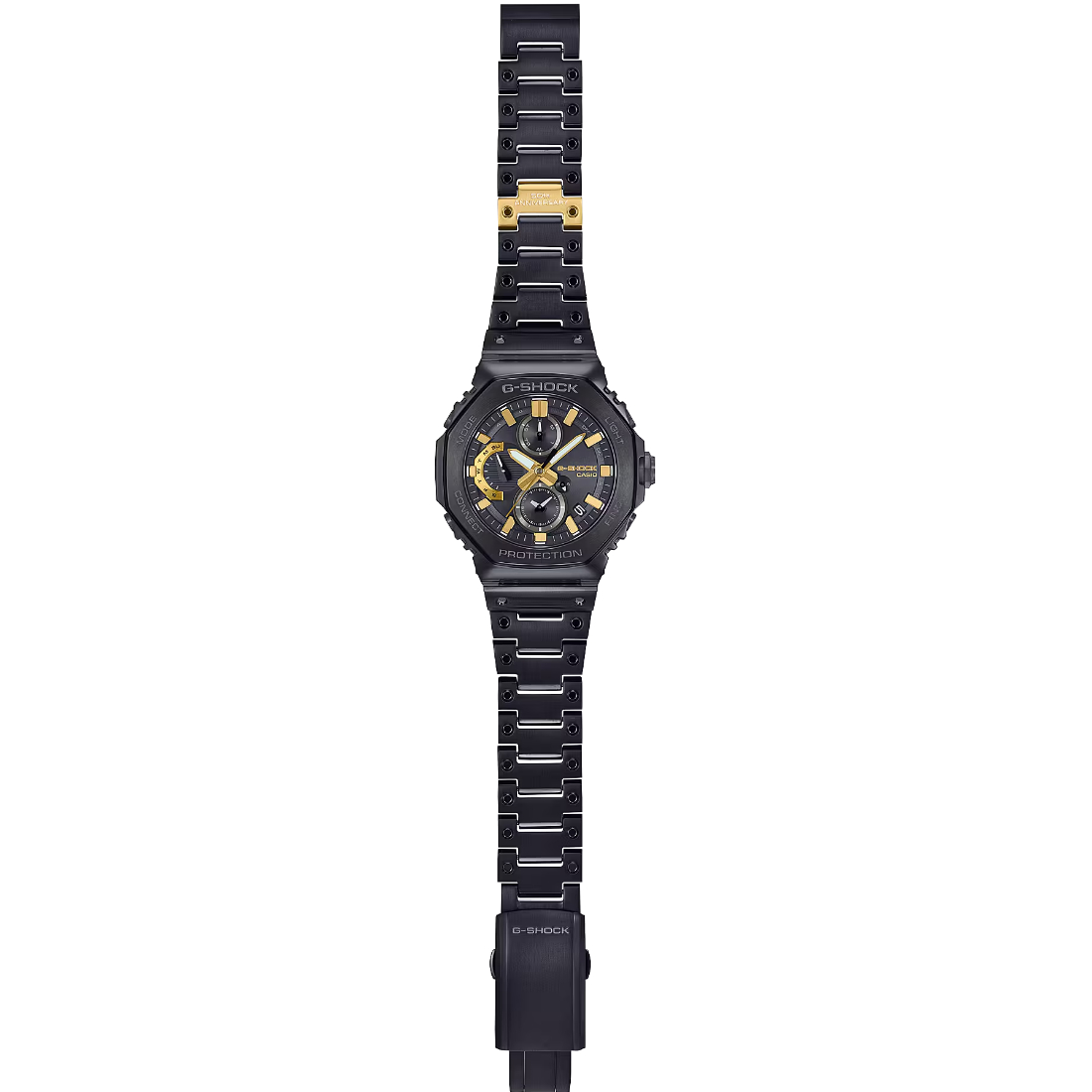 Celebre los 50 a¤os de los relojes Casio con un reloj G-SHOCK conmemorativo que brilla con la pasi¢n de Casio por el nuevo valor y la innovaci¢n constante. El GMC-B2100ZE encarna el esp¡ritu de la artesan¡a inspirado en la emoci¢n de crear algo desde la nada_ la emoci¢n de pasar de 0 a 1. Este cron¢grafo met lico G-SHOCK presenta un esquema de colores negro y dorado que evoca el primer destello de luz_ esa chispa de innovaci¢n artesanal_ en la cual comienza la creaci¢n de nuevo valor.