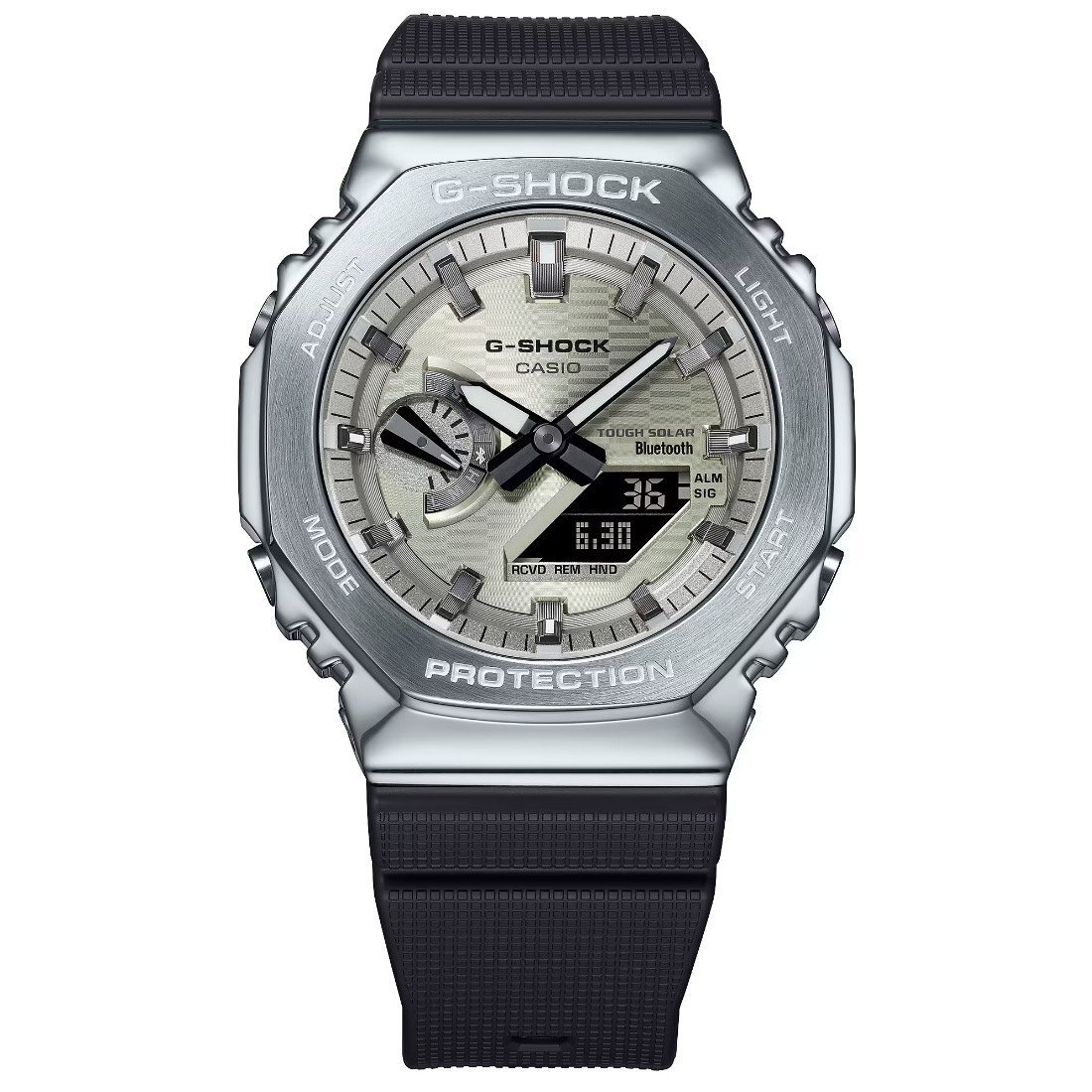 Tamaño de la caja (L× W× H): 49.3 × 44.4 × 11.9 mm Material de la caja/bisel: Resina de origen biológico/acero inoxidable Peso: 72 g Correa de resina de base biológica Resistente a impactos Resistencia al agua de 200 m Bluetooth: Se conecta a un teléfono inteligente y ajusta automáticamente la hora. Fuente de alimentación: Tough Solar (con energía solar)