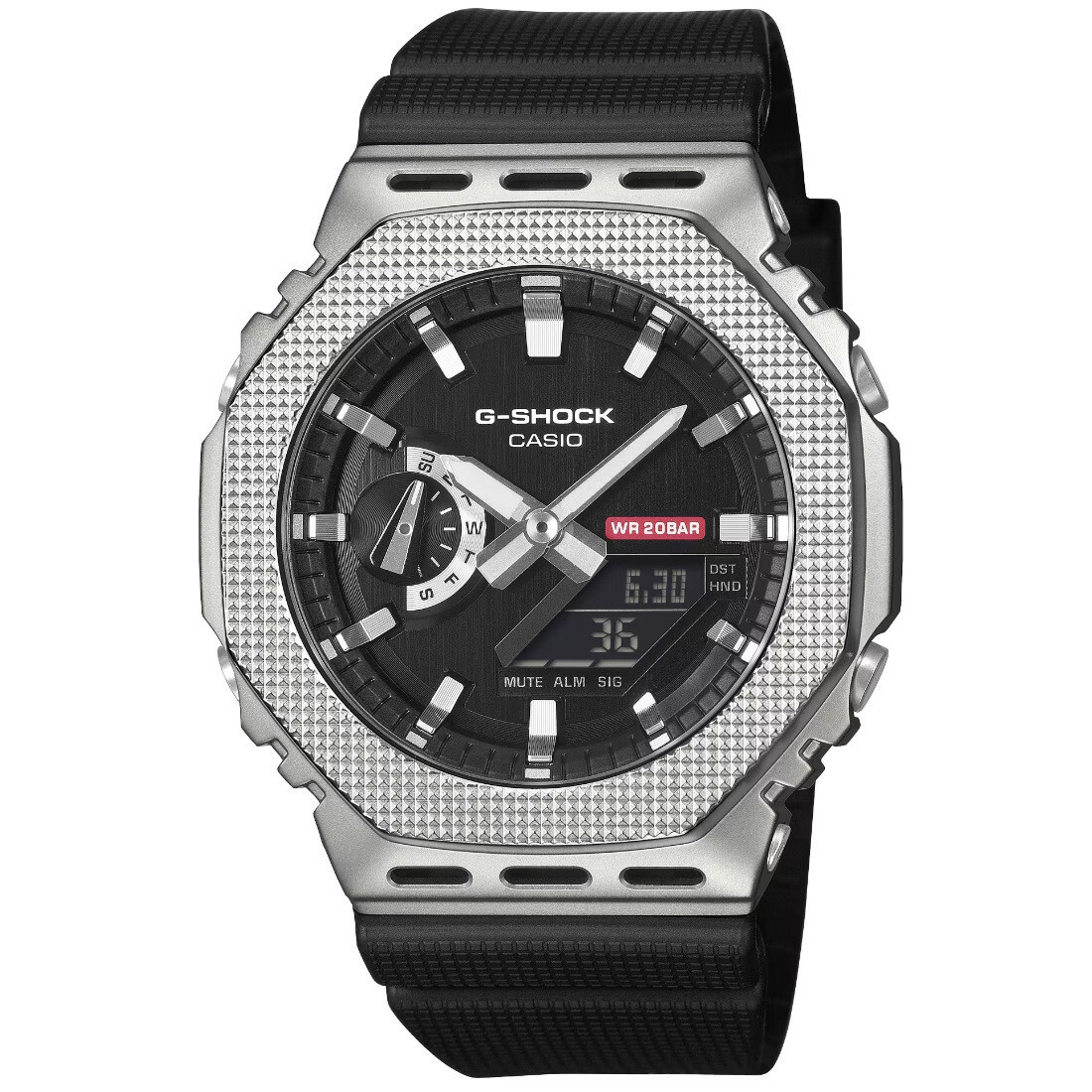 Formato de 12 y 24 horas Función de movimiento de agujas (las agujas se apartan para proporcionar una visión sin obstrucciones del contenido digital de la pantalla). Funciones clásicas de reloj: Analógica: 2 manecillas (hora, minuto [la manecilla se mueve cada 20 segundos]), 1 dial (día) Digital: Horas, minutos, segundos, p. m., mes, fecha