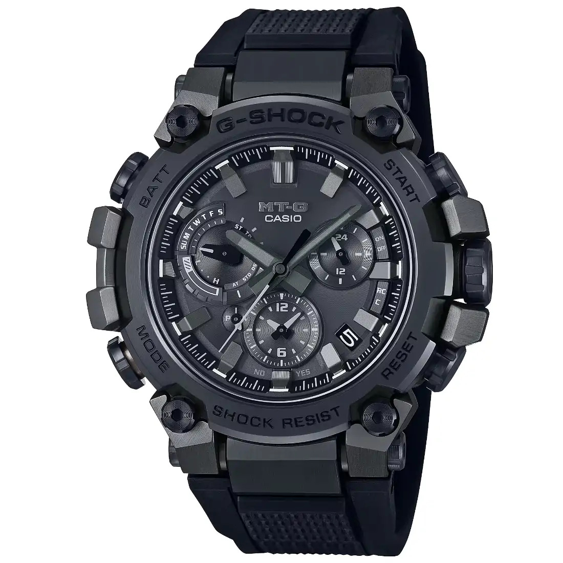 Descubra una forma innovadora de gran belleza estructural_ un reloj MT-G que naci¢ de un concepto de dise¤o completamente nuevo y que combina la resina utilizada en los primeros modelos G-SHOCK con materiales met licos. nBienvenido a un nuevo nivel de dise¤o estructural sofisticado. Con su estructura Dual Core Guard a£n m s avanzada_ el MTG-B3000 protege el m¢dulo en una carcasa de resina reforzada con carbono y recubre el exterior con componentes met licos.