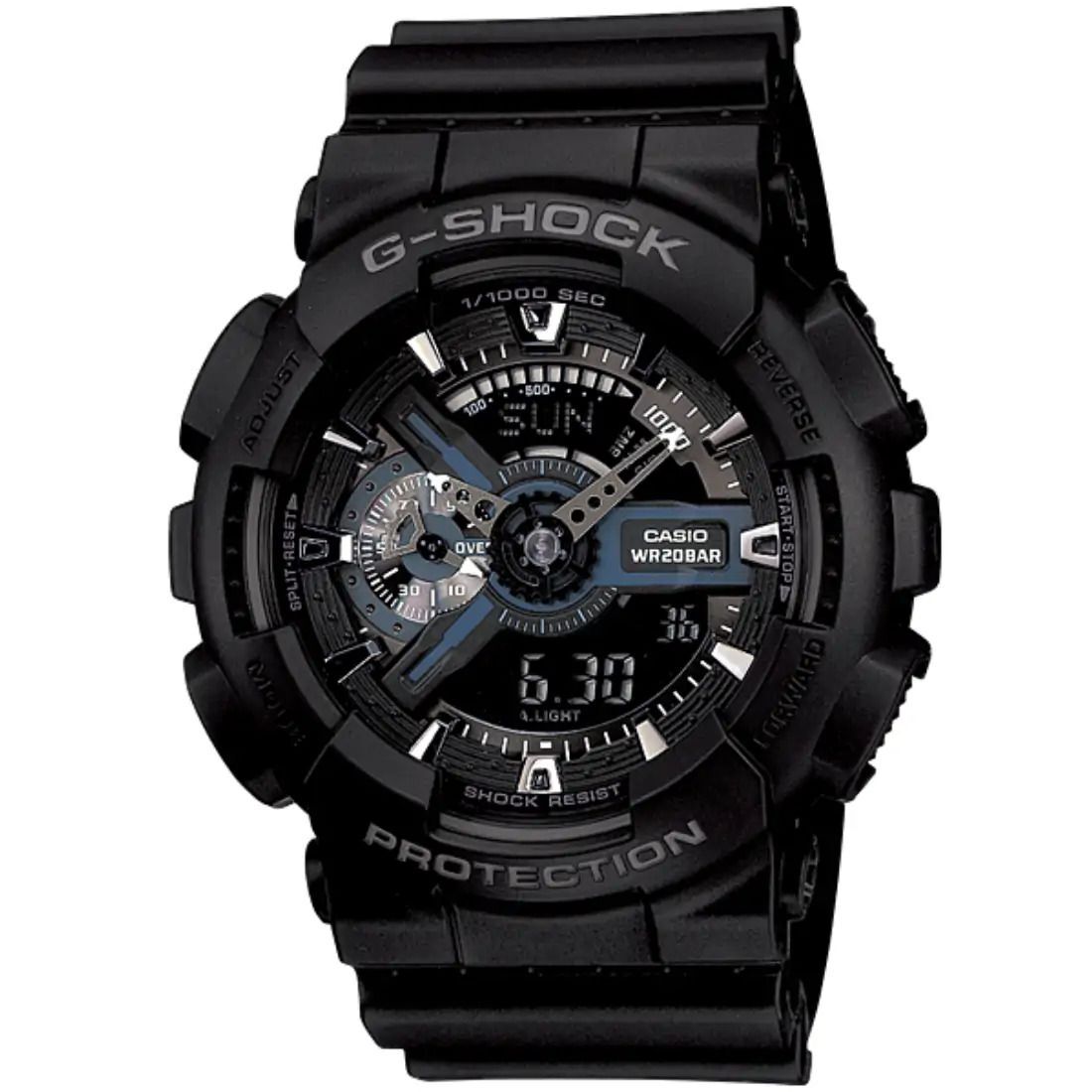 De G-SHOCK_ en su b£squeda de resistencia_ este modelo de la serie GA-110 presenta una esfera resistente y grande. El color negro se utiliza como el color similar a G-SHOCK principal para expresar m s fuerza. Equipado con un cron¢metro de medici¢n en milisegundos_ un veloc¡metro y resistencia magn‚tica de clase 1 de la norma JIS. Las piezas peque¤as tridimensionales en forma de engranaje se montan en el dial_ que fusiona pantallas anal¢gicas y digitales_ y presenta indicadores brillantes plateados que hacen que el dise¤o se destaque con mayor nitidez. Un modelo pr ctico y moderno basado en la evoluci¢n constante de G-SHOCK.