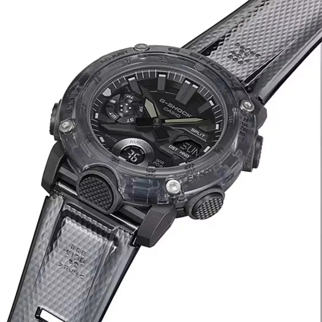 Información Básica Tamaño de la caja (L× W× H): 51.2 × 47 × 14.1 mm Material de la caja/bisel: Carbono/resina Peso: 63 g Correa de resina Resistente a impactos Resistencia al agua de 200 m Fuente de alimentación: pila