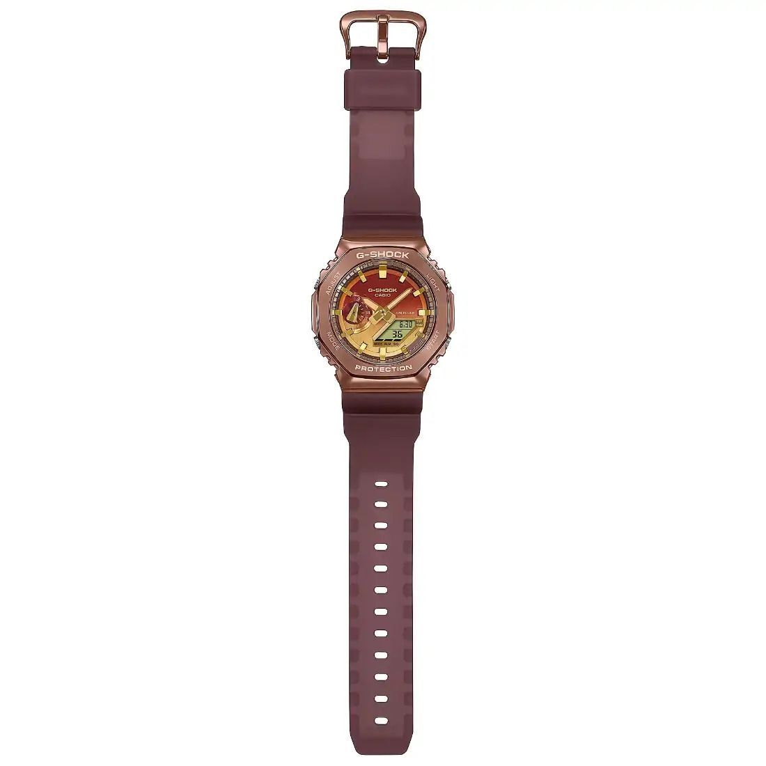 Estas versiones cubiertas de metal de los favoritos de G-SHOCK brillan con un estilo lujoso gracias al marco de metal con ba¤o de iones de color_ la deposici¢n de vapor met lico en el dial (GM-2100 y GM-110) o la impresi¢n de cristal en la esfera del reloj (GM-5600). A eso_ s£mele una colorida correa transl£cida con acabado mate y est listo para recorrer la naturaleza desrtica en busca de libertad y diversi¢n. Cada uno de ellos tiene un dise¤o colorido que complementa cada ocasi¢n_ desde eventos formales elegantes hasta salidas casuales repletas de aventura.