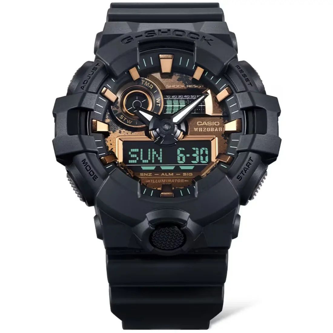 Potencie su apariencia con G-SHOCK en un dise¤o que evoca el hierro oxidado que resiste el paso del tiempo. Estos relojes rinden homenaje a la eterna b£squeda de G-SHOCK de la m xima resistencia con dise¤os neocl sicos en negro y una oxidaci¢n que evocan la tenacidad pura del hierro oxidado. Los tonos sepia_ inspirados en la textura del metal oxidado_ complementan el negro de la base. Los detalles en azul claro crean un estilo atemporal con un toque r£stico.