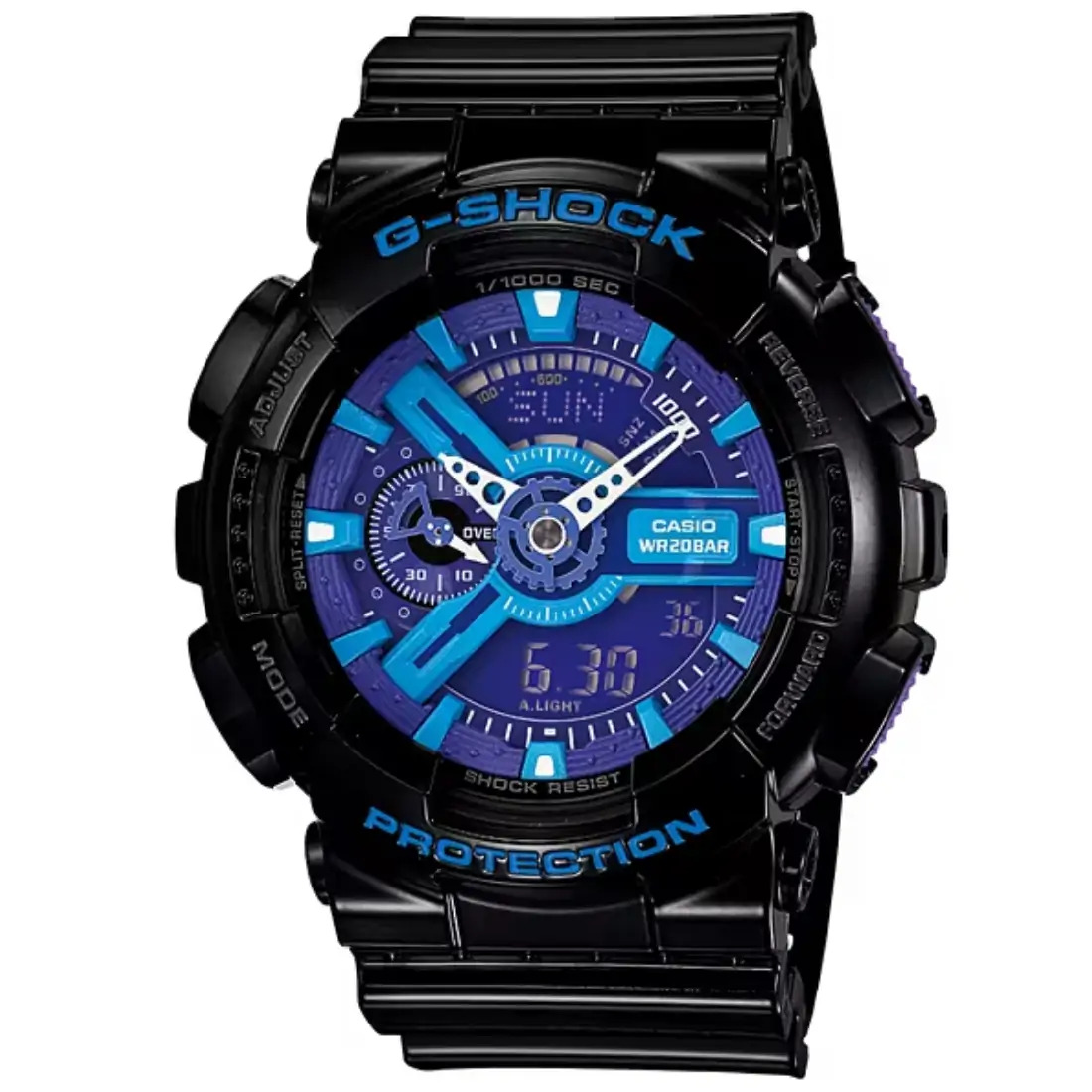 Una colecci¢n de combinaciones y modelos digitales en una amplia variedad de colores espectaculares. Las correas_ los marcos de diales_ los marcos de esferas_ los botones_ las manecillas_ las pantallas LCD_ los marcadores de hora y los marcos del reloj est n decorados con colores_ en algunos casos_ combinados y_ en otros_ en contraste. El modelo GA-110 cuenta con resistencia magntica.