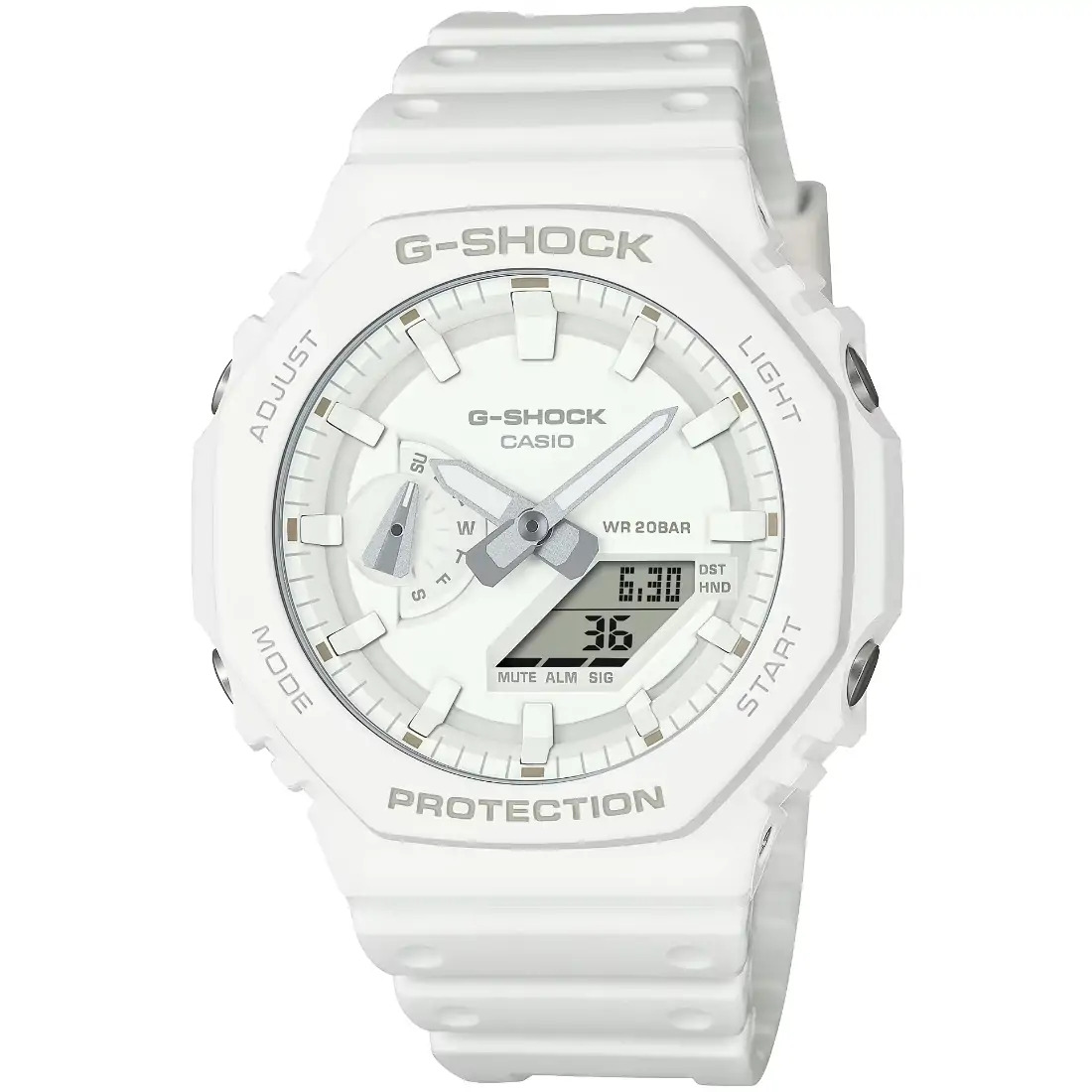 Tamaño de la caja (L× W× H): 48.5 × 45.4 × 11.8 mm Material de la caja/bisel: Carbono/resina de base biológica Peso: 51 g Correa de resina de base biológica Resistente a impactos Estructura Carbon Core Guard Resistencia al agua de 200 m Fuente de alimentación: pila