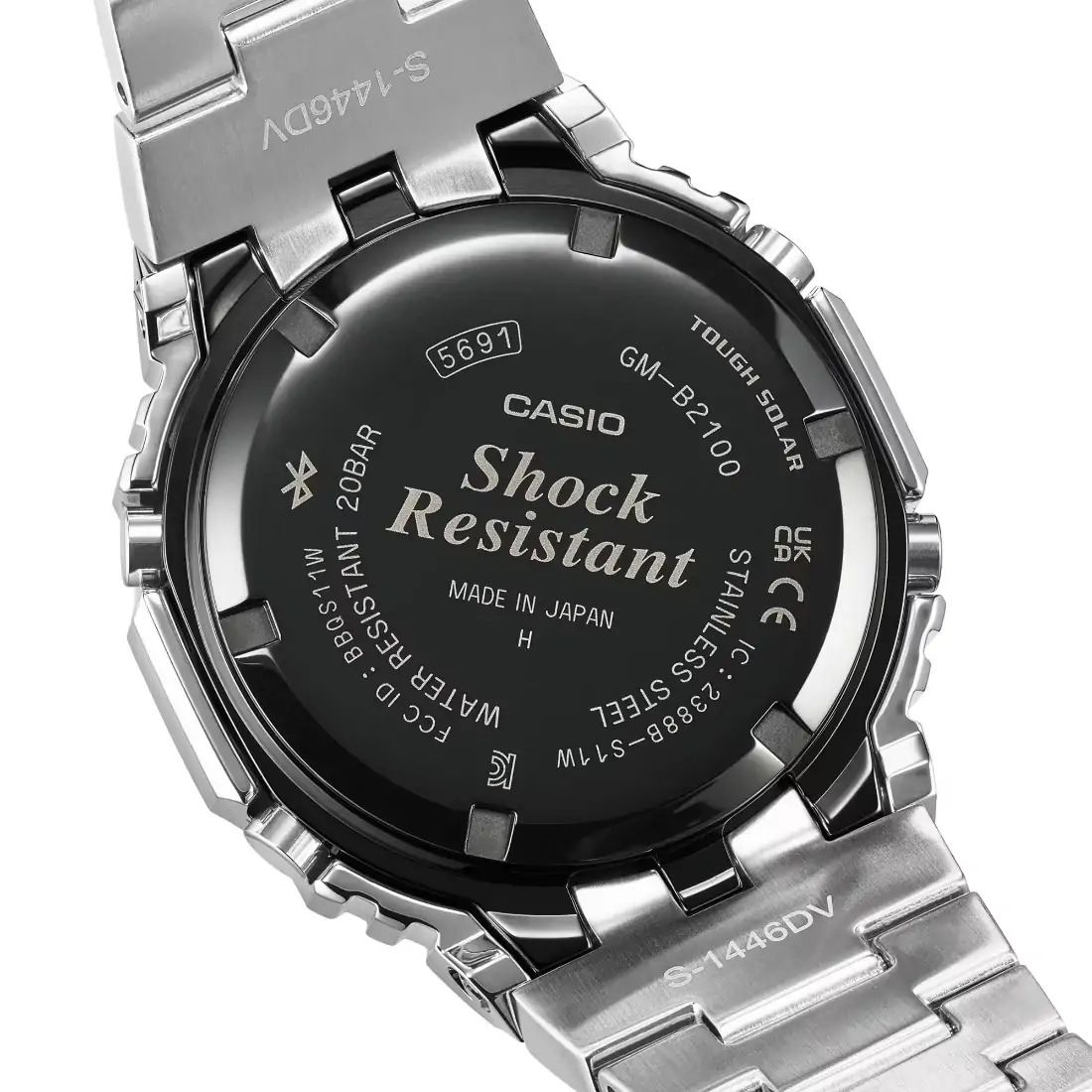 Agregue un toque de color a su estilo cl sico_ un G-SHOCK completamente met lico con dial azul brillante. El dial tiene un acabado con deposici¢n de vapor azul met lico_ lo que agrega un toque llamativo de originalidad al ic¢nico dise¤o de la correa y el marco de acero inoxidable. Entre el marco y la carcasa se instalaron componentes amortiguadores fabricados en resina fina_ con una estructura de tres puntas que dispersa los golpes hacia los tubos de conexi¢n de la correa_ para ofrecer toda la resistencia a los golpes de un G-SHOCK en un reloj totalmente met lico.