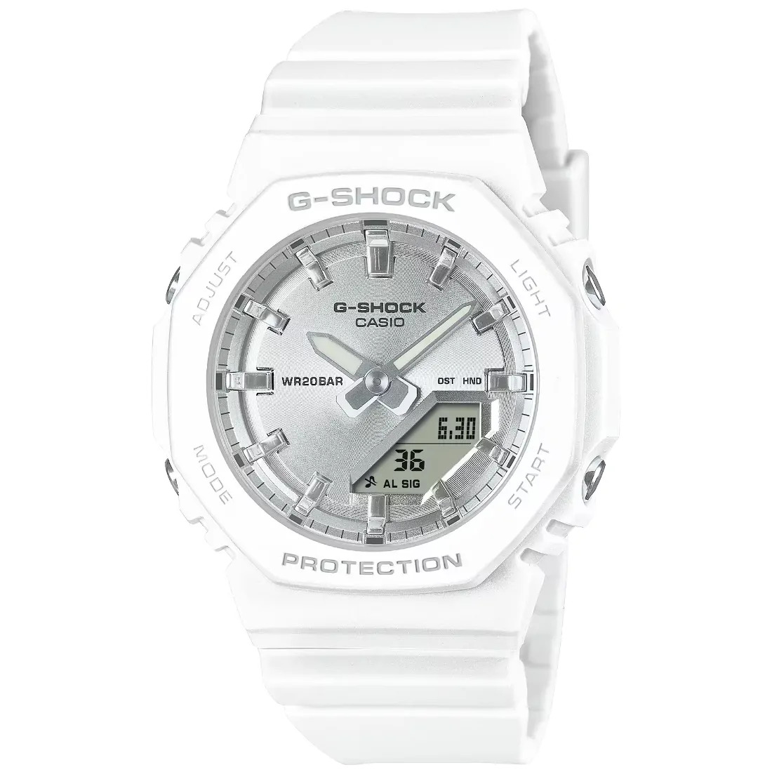 Imprgnese del brillo y el resplandor de la vida en un centro vacacional veraniego con un G-SHOCK reluciente y completamente blanco. Un accesorio de moda plateado resplandeciente que le encantar : el reloj con un toque de sol perfecto para dar inicio al verano.
