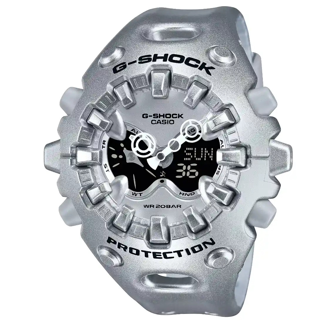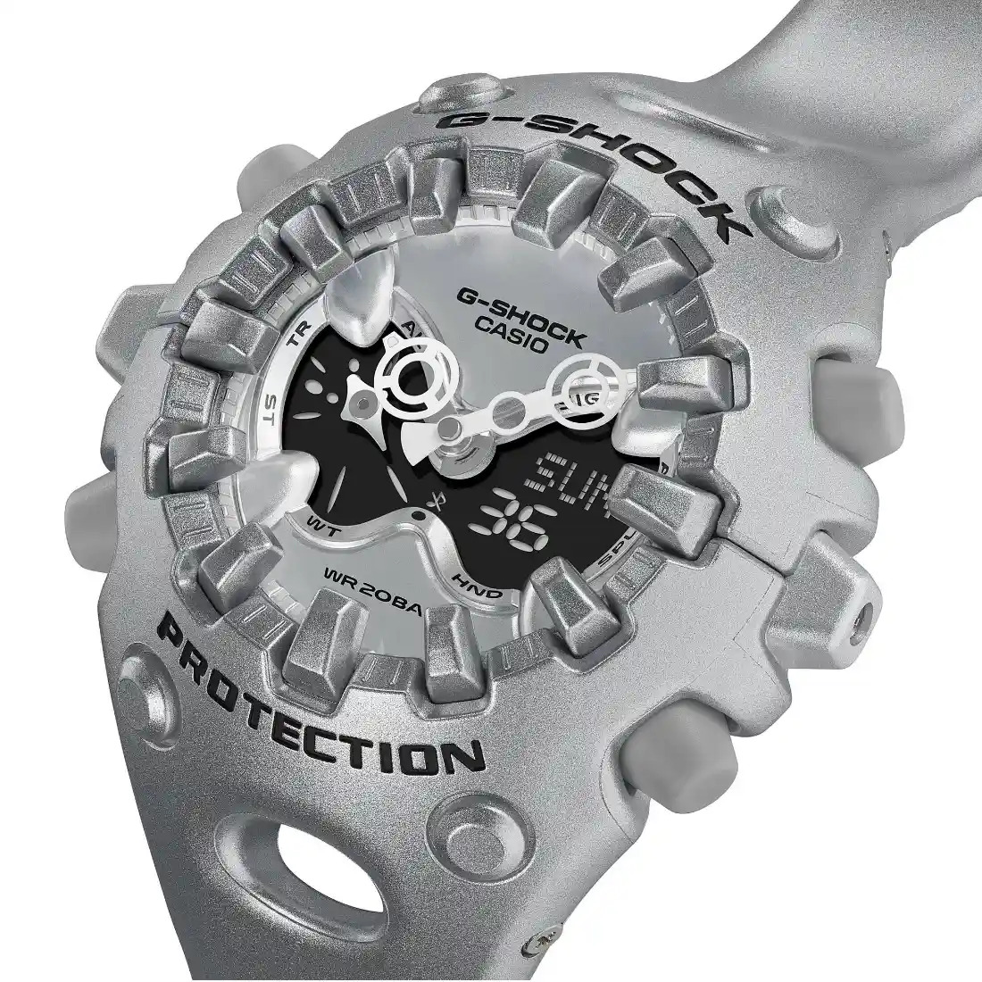 CASIO ha desarrollado una estructura de sujeci¢n magntica: un dise¤o en el que las manecillas_ que son vulnerables a los impactos_ no se fijan directamente al eje_ sino que se unen mediante fuerza magntica. Esta uni¢n magntica permite que la manecilla con mitigaci¢n de impactos (manecilla de minutos) absorba y disipe los golpes de manera eficaz. Esta nueva tecnolog¡a tambin permite crear manecillas m s grandes y ofrece m s flexibilidad en el estilo.