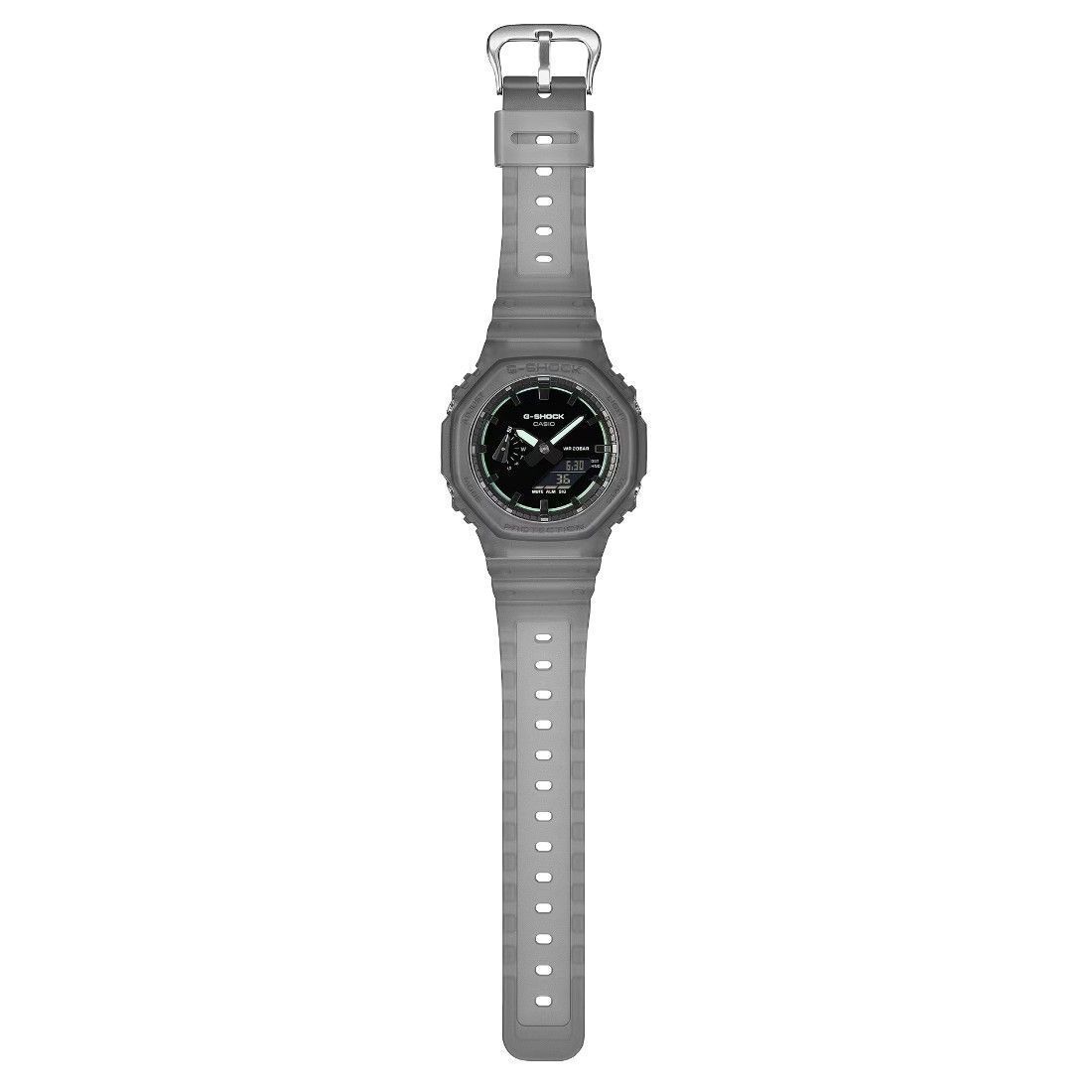 Formato de 12 y 24 horas Función de movimiento de agujas (las agujas se apartan para proporcionar una visión sin obstrucciones del contenido digital de la pantalla). Funciones clásicas de reloj: Analógica: 2 manecillas (hora, minuto [la manecilla se mueve cada 20 segundos]), 1 dial (día) Digital: Horas, minutos, segundos, p. m., mes, fecha