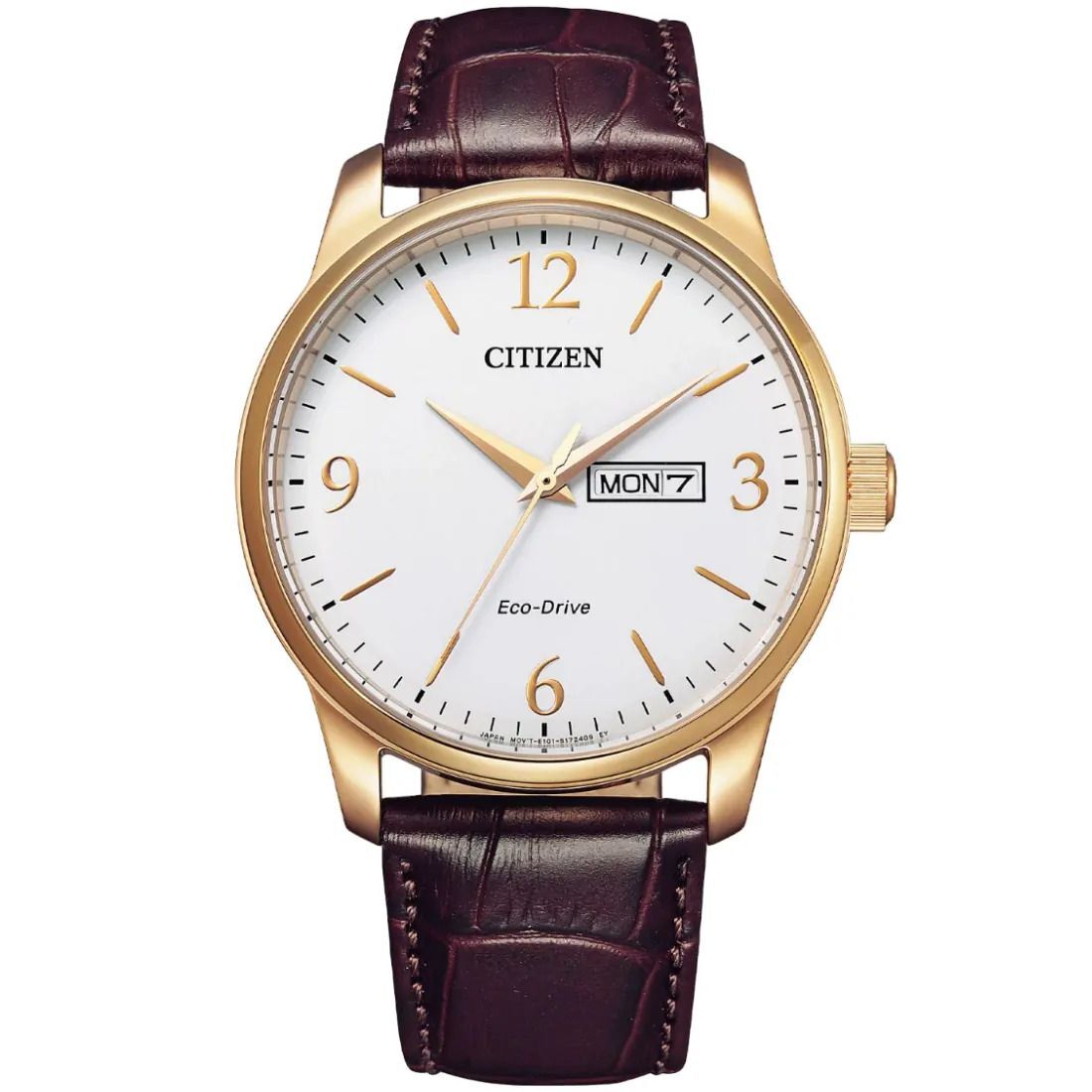 El Reloj Citizen Classic perfecto para aquellos que gustan de un estilo vintage con un giro cl sico. Con caja de acero inoxidable dorada y correa de piel_ su car tula muestra d¡a y fecha e indicadores ar bigos en dorado. Posee resistencia al agua hasta 100 metros. Impulsado por Tecnolog¡a Eco- Drive alimentado por cualquier luz.