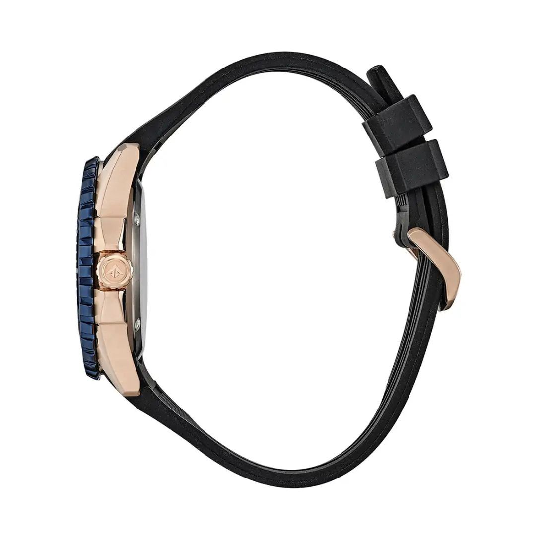 Explora las profundidades del ocano con el Promaster Dive en esta nueva combinaci¢n de color llena de estilo. Con detalles vibrantes como la caja de acero inoxidable bitono_ bisel unidireccional con aro de aluminio_ la car tula azul oscuro con fechador y 3 manecillas e indicadores luminosos_ este reloj es una pieza esencial para bucear. Su resistente correa de poliuretano negra completa el look con un ajuste c¢modo_ permitindote utilizar esta pieza de alto rendimiento en tus aventuras_ tanto en tierra como en el profundo ocano azul.