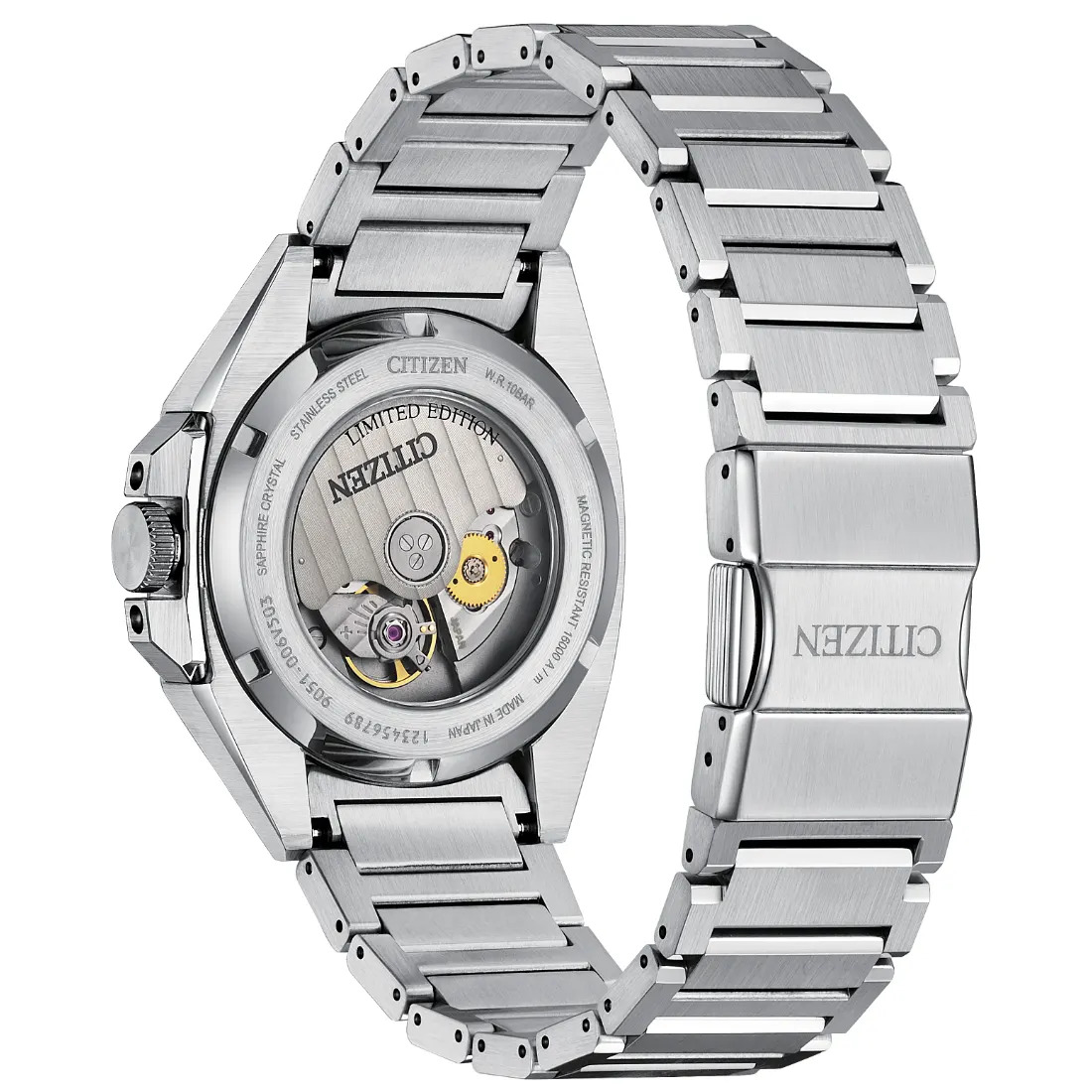 El nuevo Series8 831_ que representa la encarnaci¢n de un dise¤o cuidado y una ejecuci¢n ultralimpia_ presenta una caja facetada de acero inoxidable en tono plateado de 40 mm junto con las mejores tcnicas de acabado cepillado y pulido de Citizen. Resistente al agua hasta 100 metros y capaz de soportar campos magnticos de hasta 16.000 A/m_ el reloj funciona con el calibre 9051 de alto rendimiento.