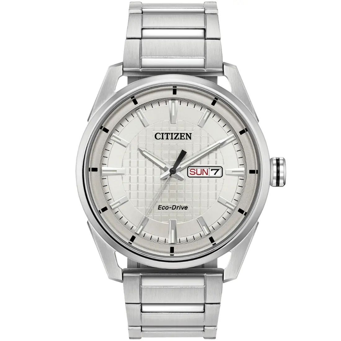 La colecci¢n Drive de CITIZEN© tiene un aspecto nuevo y fresco con el reloj Weekender. Con caja con elegantes orejas angulares y banda de acero inoxidable_ tiene una car tula met lica estampada dimensional que muestra d¡a y fecha. Posee resistencia al agua hasta 100 metros. Gracias a la tecnolog¡a Eco-Drive jam s requerir bater¡as.