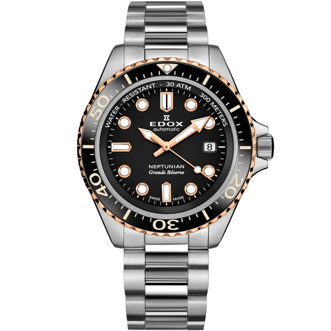 Especificaciones Bisel de cerámica giratorio , Corona de rosca , Corona Edox y/o pulsador con doble cierre (sistema O´ring) , Superluminova X1 en manecillas y/o índices