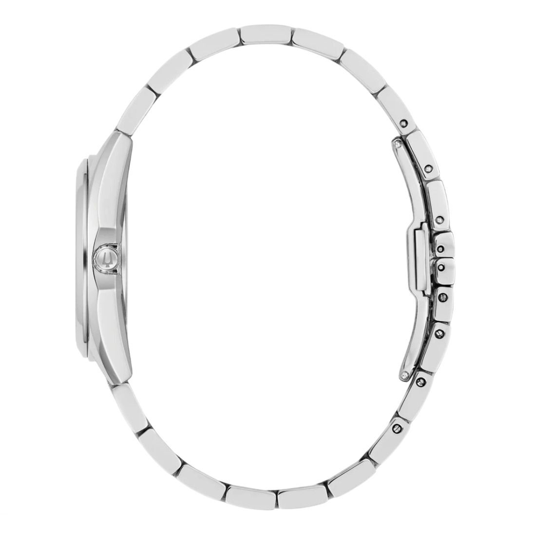 Definido por su excepcional calidad y estética sofisticada, el Surveyor de Bulova para mujer es el reloj contemporáneo por excelencia. Los bordes biselados y el facetado distinguen la caja de acero inoxidable plateado pulido, el cristal de zafiro plano y el brazalete de acero inoxidable plateado de tres eslabones a juego, con cierre desplegable de botón y pasadores de fácil liberación. La radiante esfera azul claro presenta detalles plateados y manecillas con relleno luminiscente. Para quienes buscan un lujo refinado, este reloj Bulova para mujer es el compañero perfecto para el día a día.