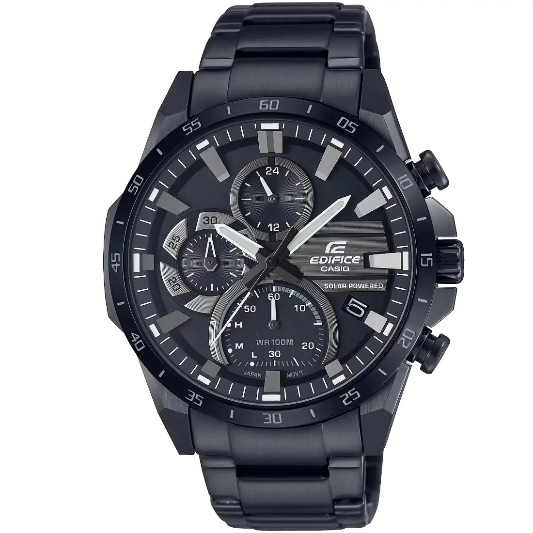 Tome el control de la velocidad y la inteligencia con un EDIFICE alimentado por energía solar inspirado en el rotor de freno de disco de un automóvil deportivo. El cronógrafo a energía solar EQS-940DC cuenta con llamativos diales de inserción en una esfera de reloj diseñada con profundidad y dimensión.