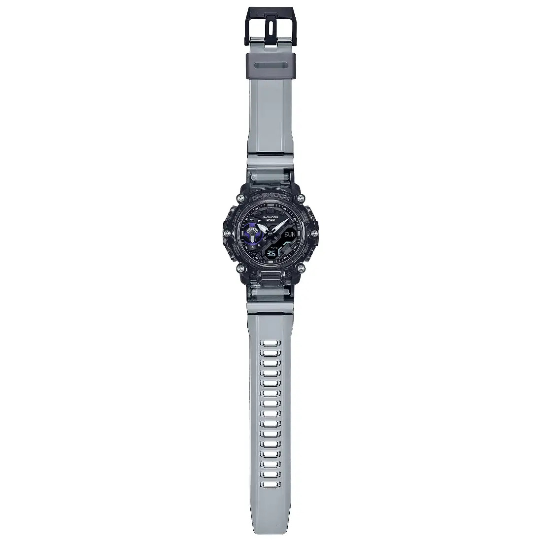 Analógica: 2 manecillas (hora, minuto [la manecilla se mueve cada 20 segundos]), 1 dial (modo) Digital: horas, minutos, segundos, p. m., mes, fecha, día
