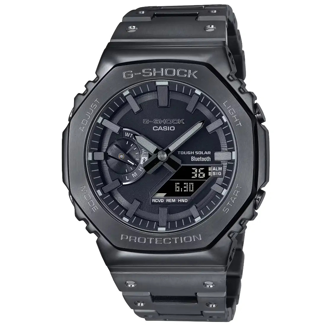 Analógica: 2 manecillas (hora, minuto [la manecilla se mueve cada 20 segundos]), 1 dial (nivel de carga de la batería, modo) Digital: horas, minutos, segundos, p. m., mes, fecha, día