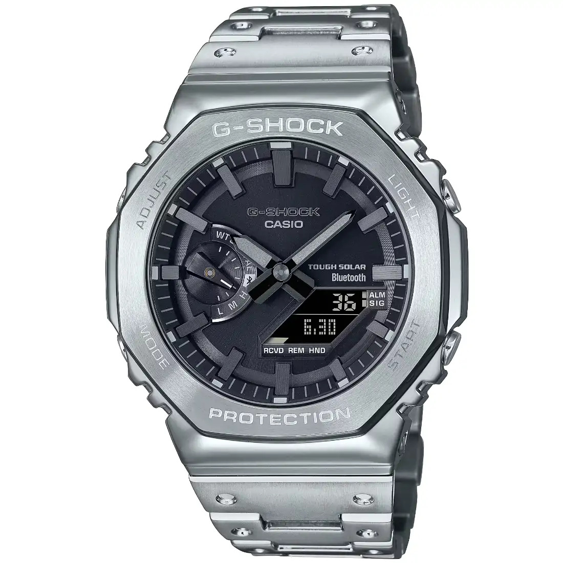 Analógica: 2 manecillas (hora, minuto [la manecilla se mueve cada 20 segundos]), 1 dial (nivel de carga de la batería, modo) Digital: horas, minutos, segundos, p. m., mes, fecha, día