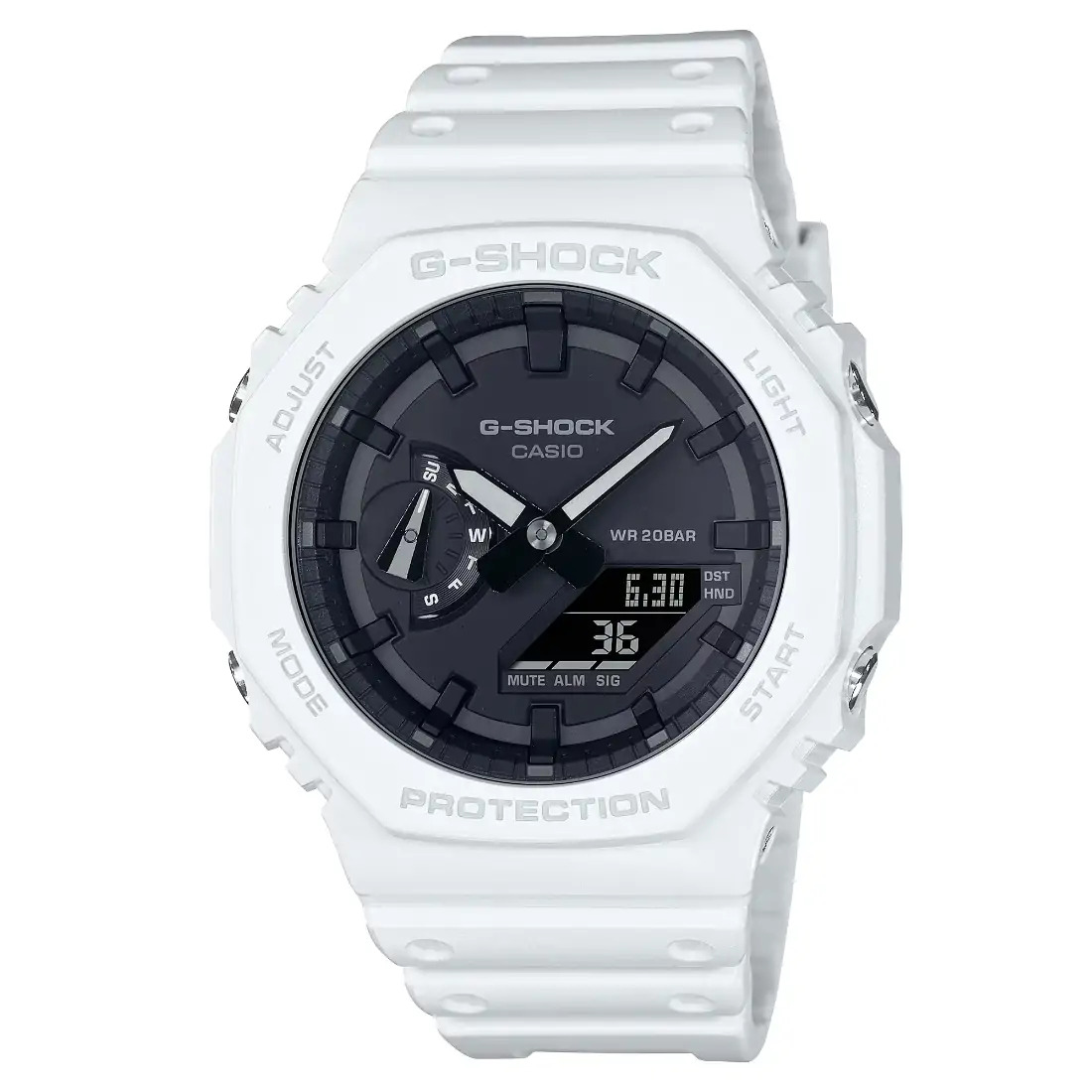 Analógica: 2 manecillas (hora, minuto [la manecilla se mueve cada 20 segundos]), 1 dial (día) Digital: Horas, minutos, segundos, p. m., mes, fecha