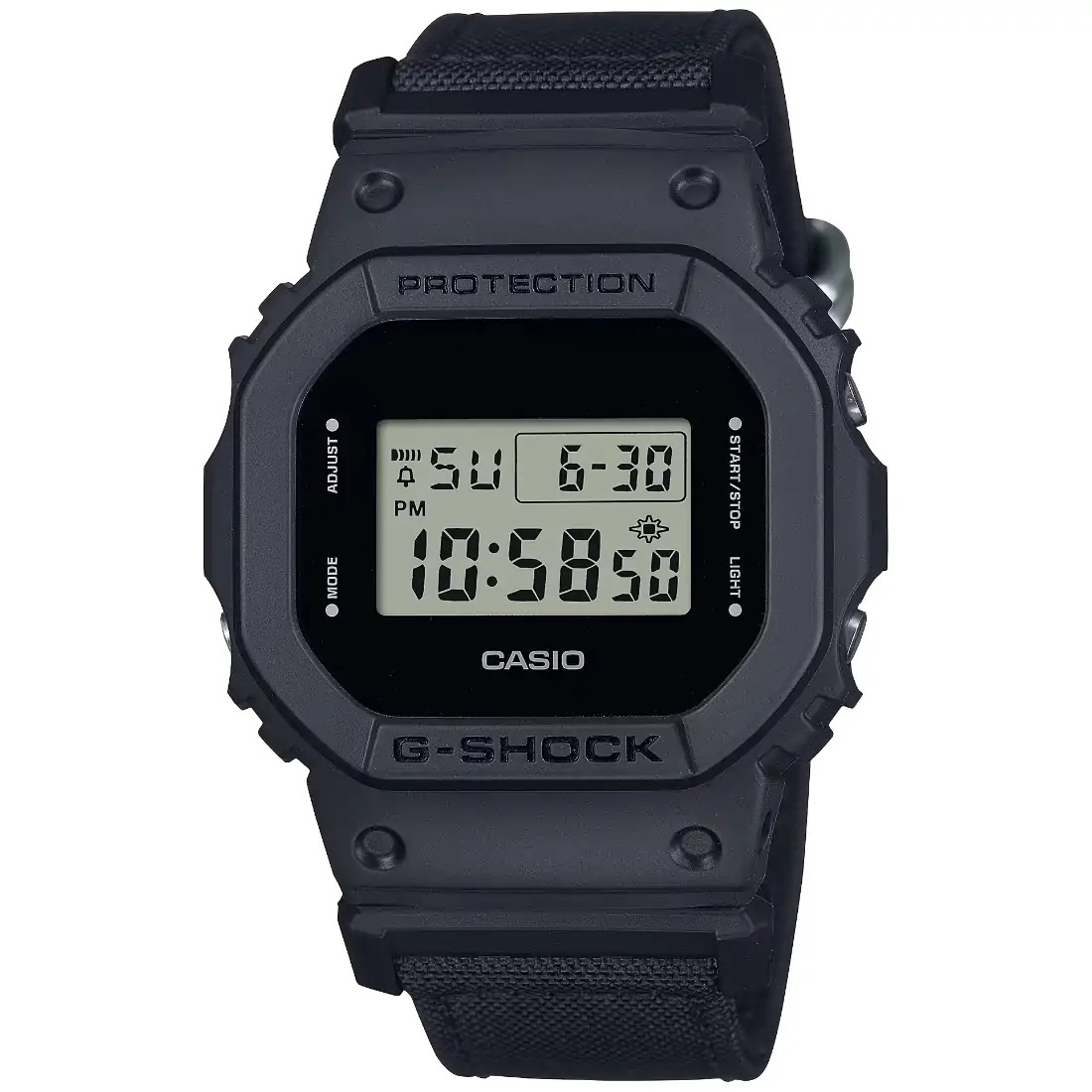 Este G-SHOCK con correa de nailon Cordura, práctico para la calle y ecológico al mismo tiempo, ofrece todo lo que necesita. El moderno diseño completamente negro se complementa con una correa hecha de nailon Cordura ecológico, lo que crea un aspecto fresco y versátil que le permite alternar sin problemas entre el trabajo y el ocio